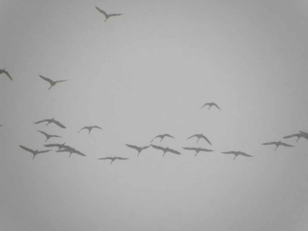 Au-dessus de nos têtes passent de nombreuses grues du Canada, en pleine migration.