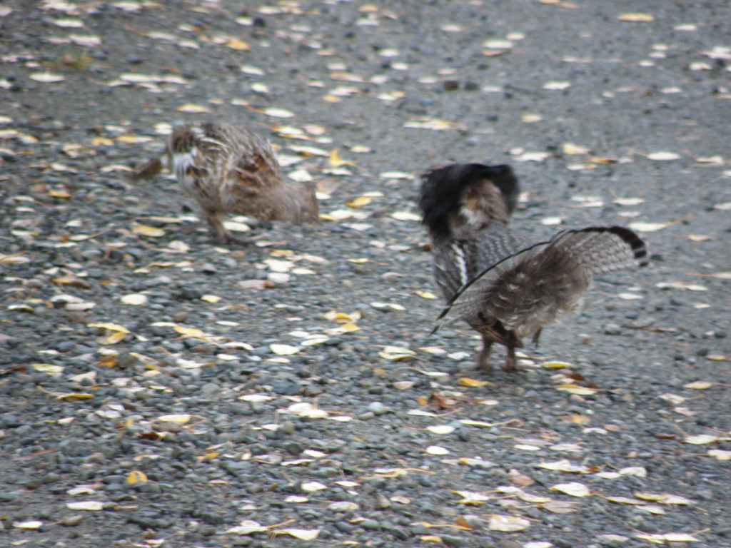 Après le repas, nous reprenons la bonne route goudronnée. Nous faisons un arrêt vers une cascade soi-disant spectaculaire… mais finalement, elle ne casse pas trois pattes à un canard ! Puis nous poursuivons jusqu’au lac Teslin où nous posons le camping-car. Là, plusieurs tetras du Canada se baladent et les mâles font la cour aux dames… sympa !